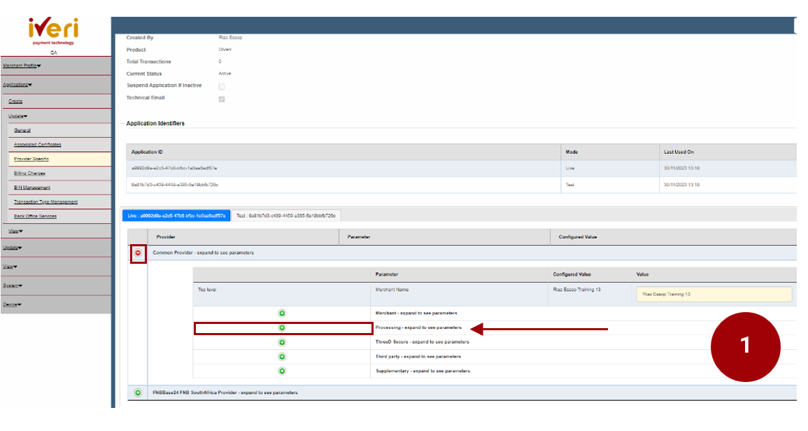 1. Navigate to the ‘Processing’ parameter and click on the expansion button.