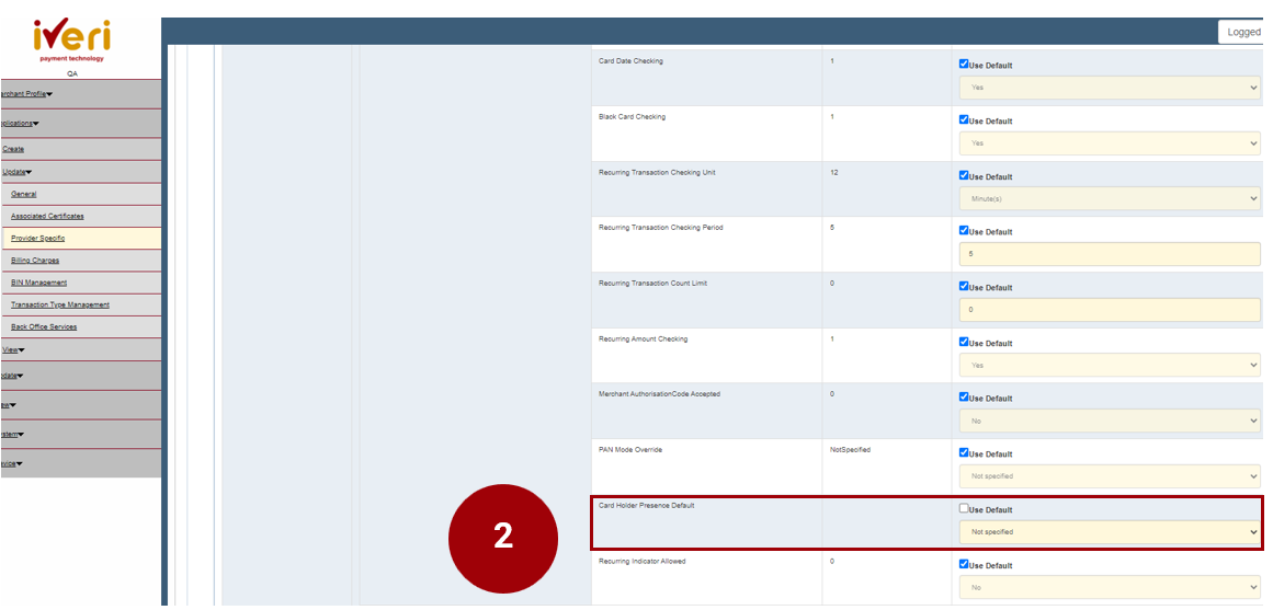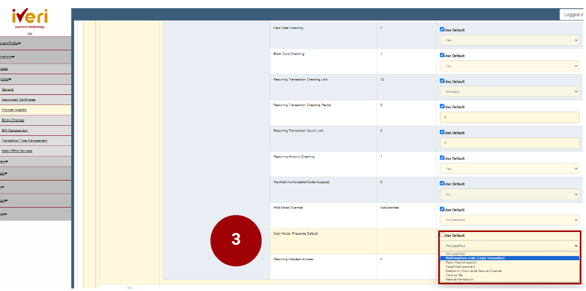 2. Navigate your way to the ‘Cardholder Presence Default’ Parameter. This parameter will be defaulted to ‘Not specified’.
