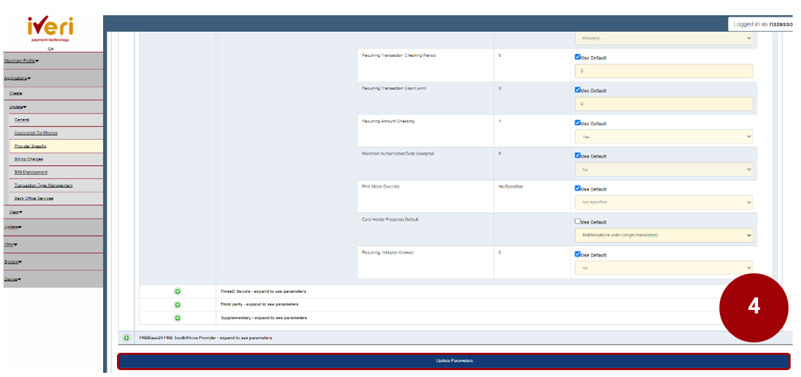 4. Lastly, to ensure the change has been saved, click on the ‘Update Parameters’ tab.