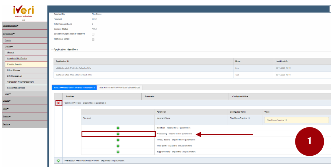 1. Navigate to the ‘Processing’ parameter and click on the expansion button.