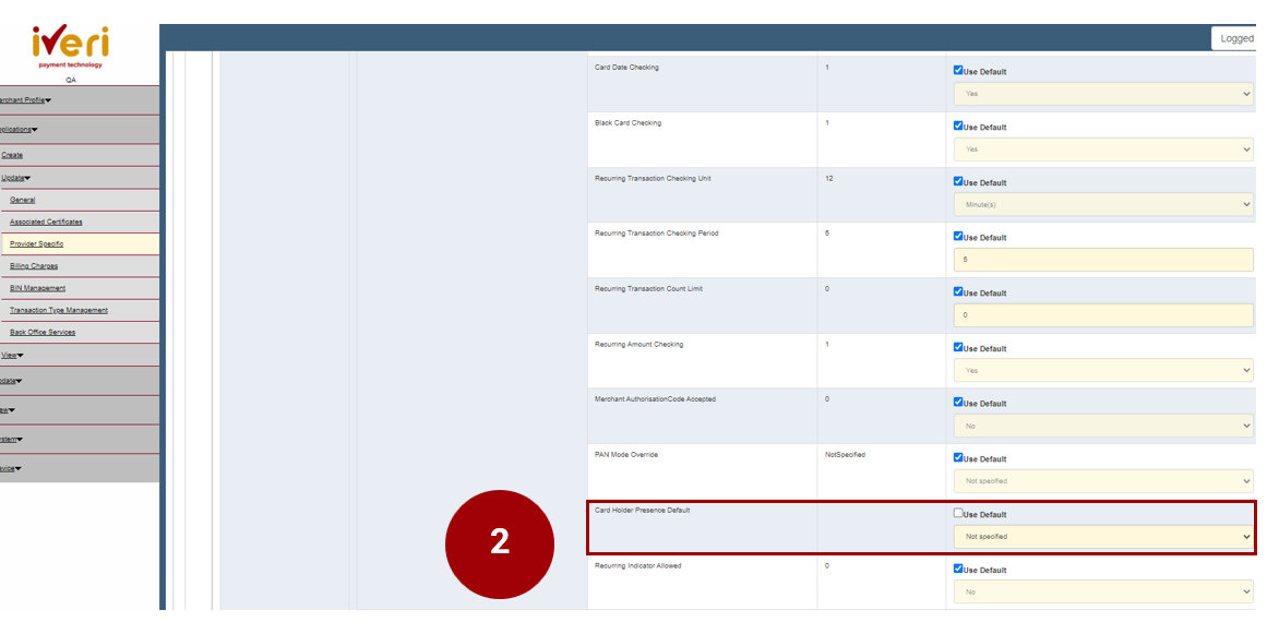 2. Navigate your way to the ‘Cardholder Presence Default’ Parameter. This parameter will be defaulted to ‘Not specified’.
